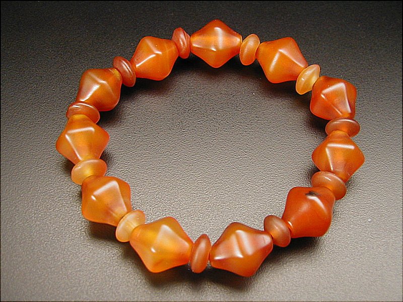 最後の写真をご覧下さい。現在出品の朱紅蚕絲の同質品を利用し伝統的な飾品様式で製作されたブレスレットの品です。ご参考にご覧下さい(出品には含まれません)。