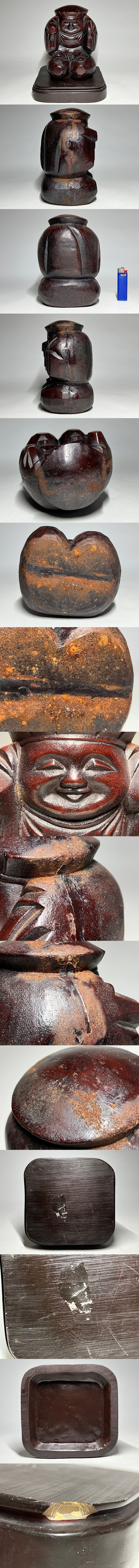 時代 鉄製 大黒天像 台付 ◆商品詳細 寸法(約):大黒天像のみ:20x12.5x11(高×幅×奥行cm) 重さ:3kg ※寸法に若干の誤差が生じる場合もございます。 台にカケが有ります。 汚れ、擦り傷、剥がれ、錆がありますので、 ご承知の上入札お願いします。 状態等画像にてご確認の上ご入札よろしくお願いいたします。 ◆発送先等のご連絡とお支払いについて ※発送先等のご連絡 落札時から48時間以内にお願い致します。 ※お支払 かんたん決済の期限内にお願い致します。 複数点落札時にまとめて取引の場合(72時間内)に、 まとめて取引の取引手順(落札者方の操作)を参考にお願い致します。 梱包したサイズを測って、地方によって送料を決めますので、よろしくお願いします。 ◆掲載画像について ※画像は現物を撮影しておりますが、照度、遮光、モニターによっては実物と 色目が異なって見えることがありますのでご注意ください。掲載画像では確認 できない傷や汚れがある可能性もございます、あくまで 中古品であるということをご承知の上、御入札をお願い致します。 ◆補償について 商品到着後はすぐに状態の確認をお願い致します。 商品の破損等がございまし たら、箱や梱包材など全てそのままの状態で保存し、お早めにご連絡ください。 (到着日から一週間以上経過、梱包材の廃棄済み等の場合、保証は致しかねます のでご注意ください。) ◆返品について 思っていたイメージと違う、などのお客様主観による返品はお受けできません ので、予めご了承ください。ノークレーム、ノーリターンでお願いします。届 いた商品が商品説明と著しく異なる場合(寸法、キズ記載ミスなど)のみ承り ます。早めにご連絡ください。 ◆注意事項 当方の希望価格と隔たりがある場合は、終了前にやむなく取下げさせて頂く場 合がございます。 ※商品ご落札翌日から4日間以内にご連絡が取れない場合は、入札取消の処置を 取らさせていただく場合がございます。 ※評価の悪い方は取り消す場合がございます。 ※原則として当方の不備以外のキャンセル・返品・返金は受け付けておりません。 以上の点を予めご了承頂いた上で、入札・落札お願い致します。 ◆発送方法 ▼ゆうパック(補償あり/追跡あり) 梱包後のサイズ:~約80cm ※送料全国一律1200円 (但し北海道、沖縄、離島は+500円いただきます。) 発送元は静岡県となります。 ( 商品の組み合わせによっては同梱をお断りさせていただく場合があります。) ※大型商品について 郵便局の規定を超える商品の場合は、佐川急便またはヤマトでの発送となります。 |