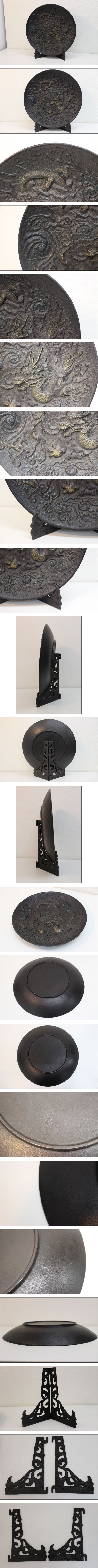 R325 貴重 時代物 南部鉄器 南部宝生堂 大皿/飾皿 雲龍彫刻 古美術品 直径約44.5cm 工芸品/伝統工芸/金属工芸 鉄製 在銘/銘有 アンティーク | |||