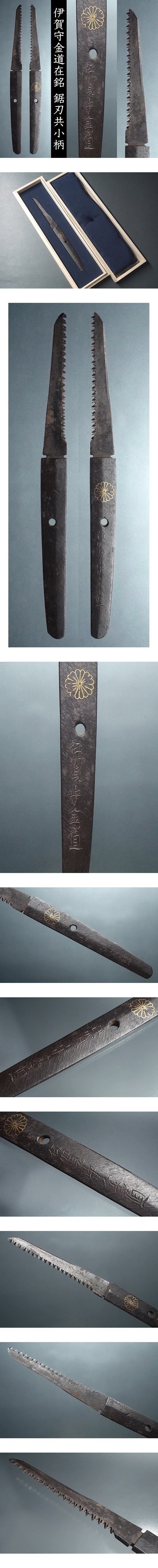 珍品希少 鋸刃共小柄 菊紋金象嵌入 伊賀守金道在銘