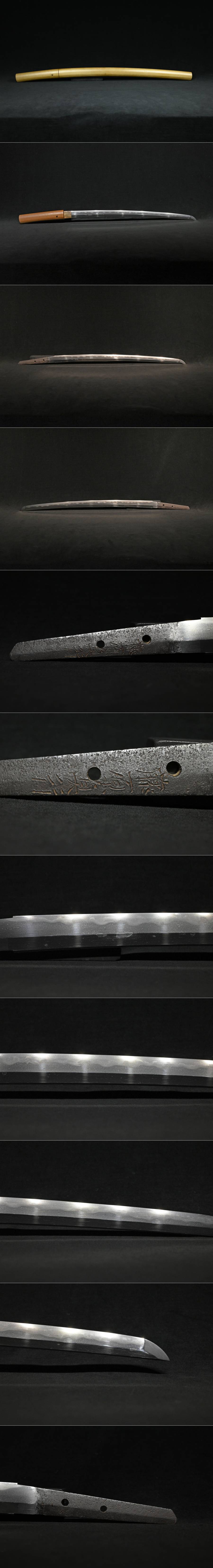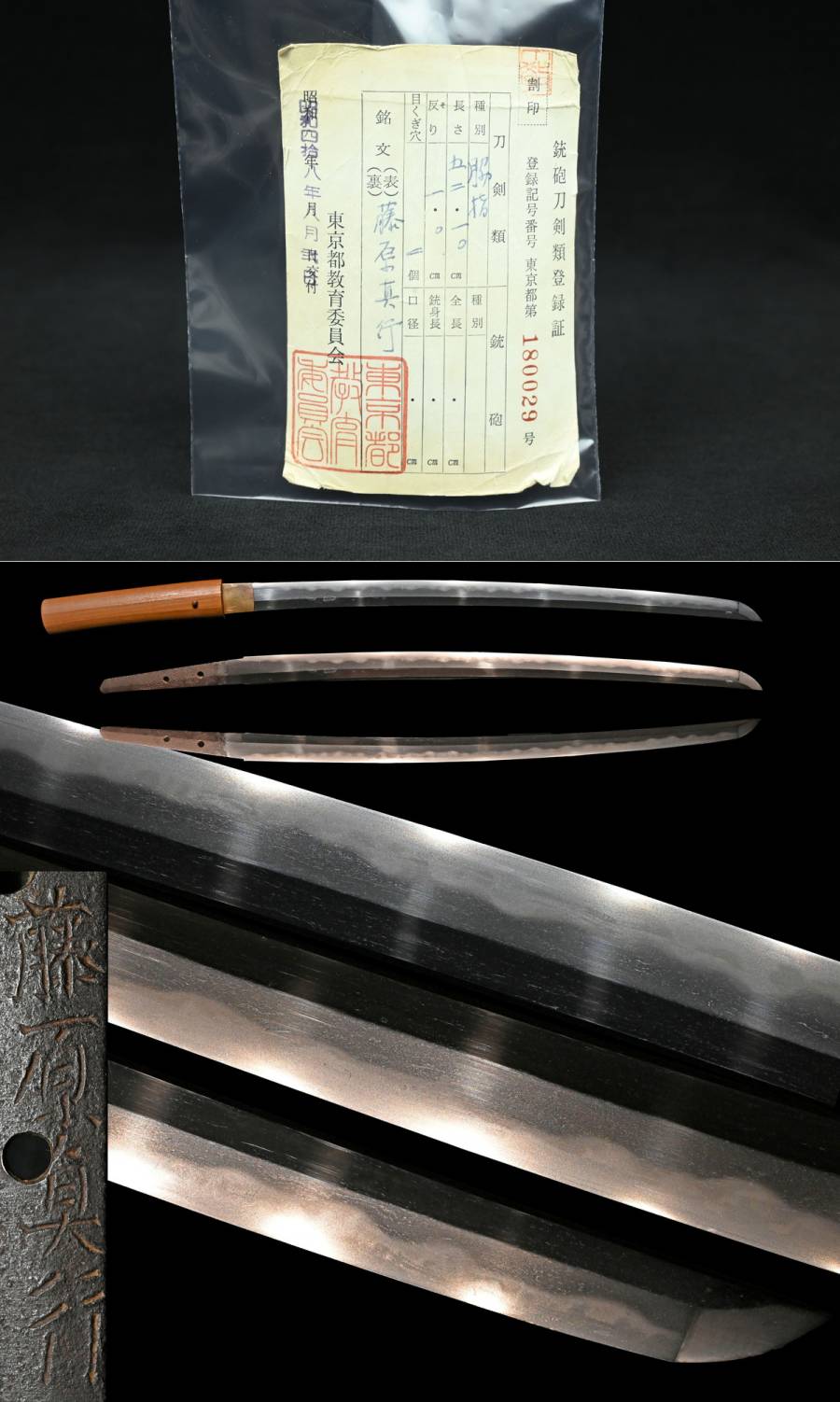 【昊】藤原真行 互の目乱れ刃文 板目肌 刃渡り52.1cm 脇差 刀剣武具[RN63Bs]