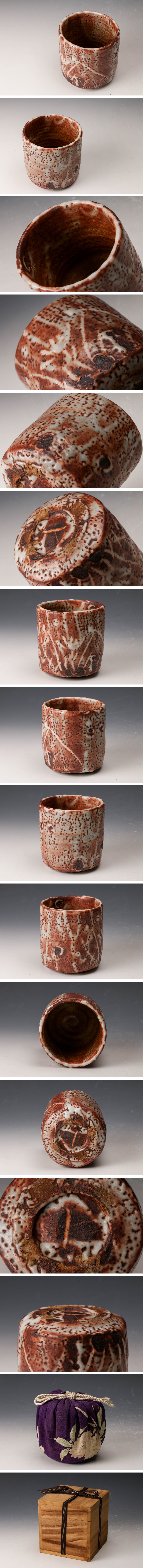 【佳香】作者不詳 在印 鼡志野筒茶碗 木箱 仕覆 茶道具