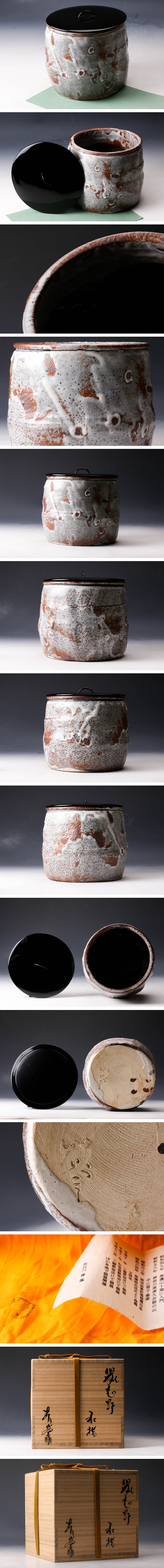 【佳香】長谷川青峯 鼠志野水指 共箱 共布 塗蓋 茶道具 本物保証