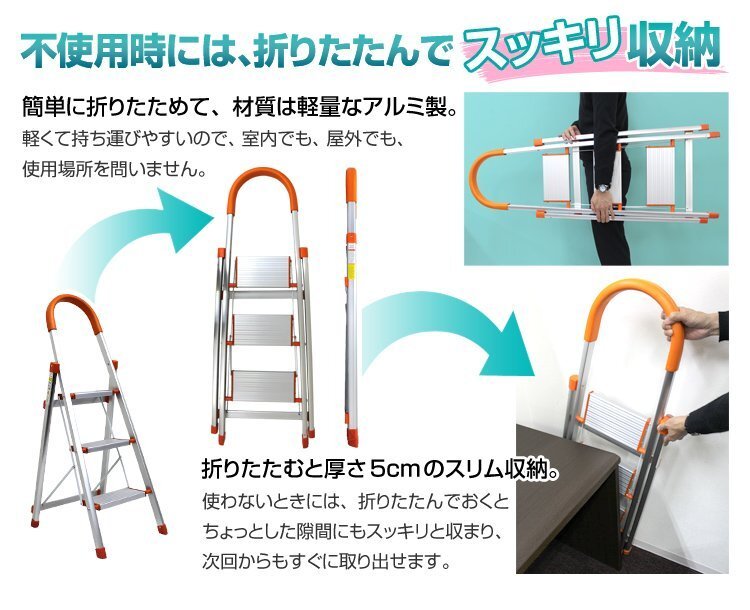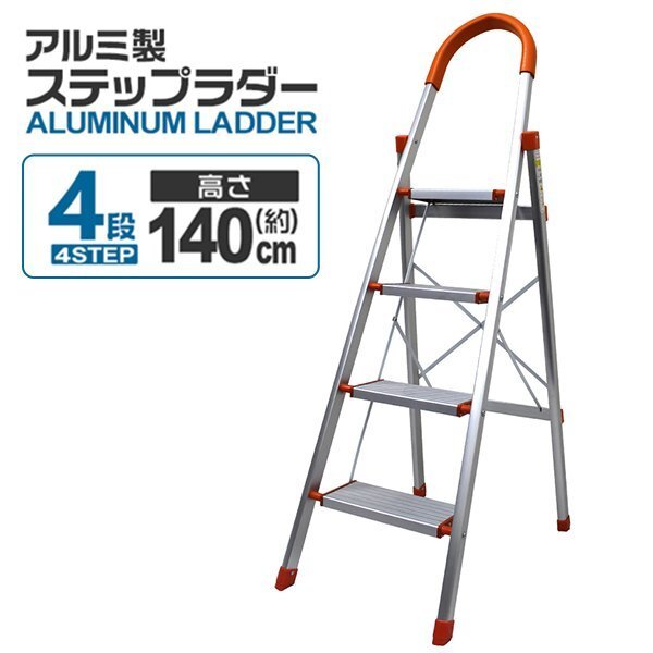 脚立 はしご 4段 アルミ 踏み台 折りたたみ おしゃれ 軽量 折りたたみ脚立 ステップラダー 雪下ろし 踏み台 ステップ台 家庭用 オレンジ
