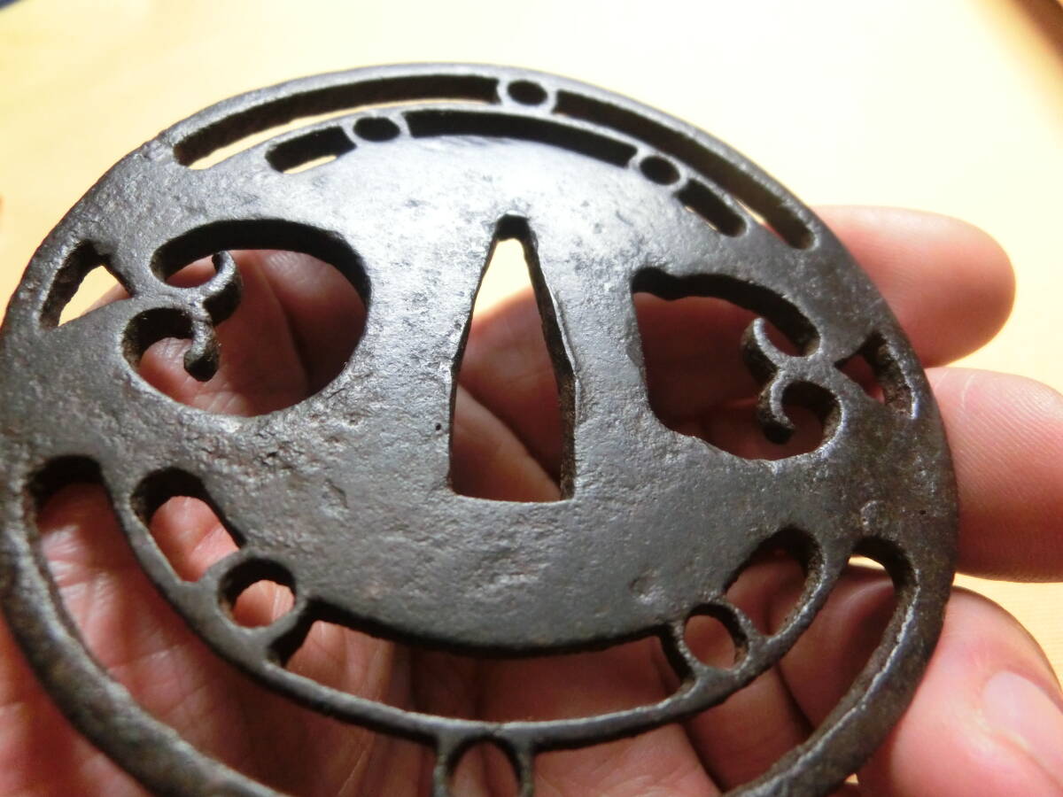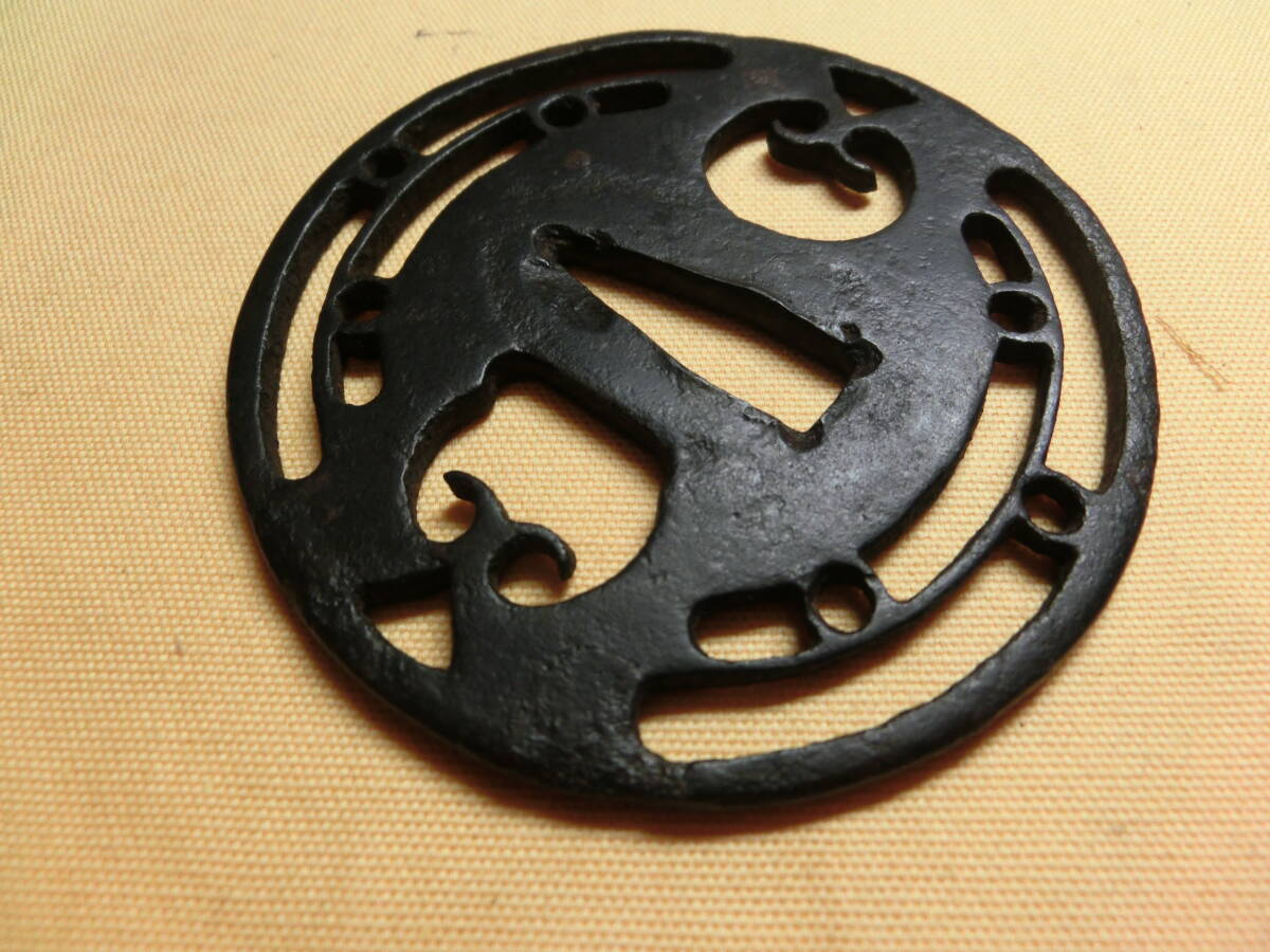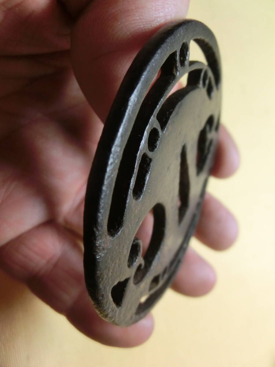 ★☆ 名品 神-182 鉄锷 甲冑师锷 丸形 左右蕨手の図 音色良 ★☆