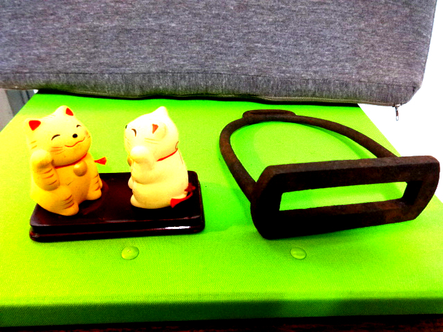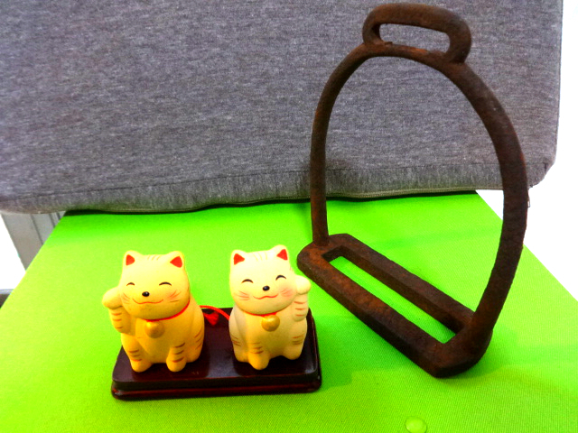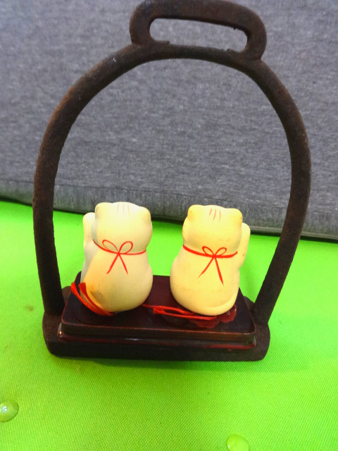 鉄の古民具 马具 镫 足乗せ 招き猫 幸运の二刀流 右左のおいでのお手々 珍品