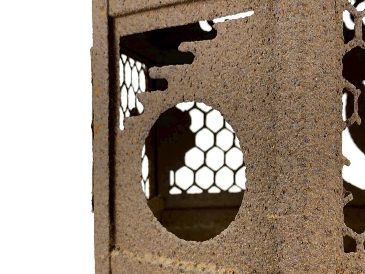 「母」 江戸期 古鉄 日月透かし 蝉细工 吊灯笼 置灯笼 六角灯笼 (D)