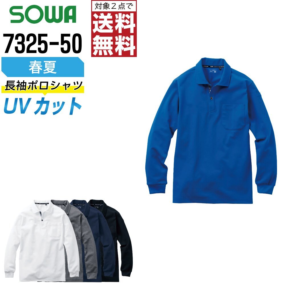 桑和 7325-50 长袖 ポロシャツ 作业服 春夏 吸汗速干 色:ホワイト サイズ:LL ★ 対象2点 送料无料 ★