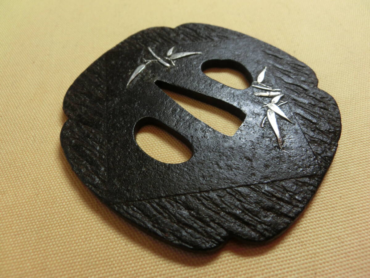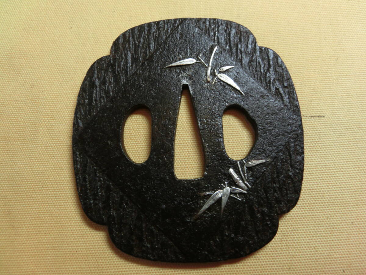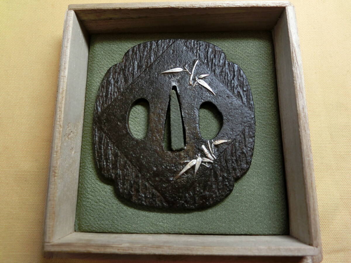 ★☆优品 神-232 鉄锷 会津正阿弥 银竹の図 木瓜形 音色良 象嵌★☆