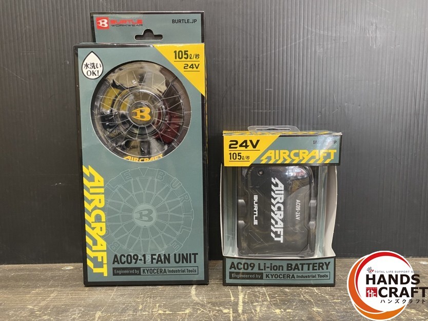 ●【保管未使用品】BURTLE バートル AIR CRAFT エアークラフト用 AC09/AC09-1 リチウムイオンバッテリー・ファンユニット 〈25年モデル〉