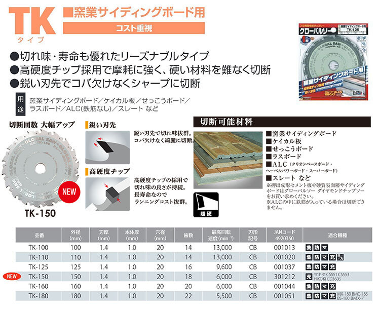 【オススメ】〈モトユキ〉 チップソー 窑业サイディングボード用 TK-150