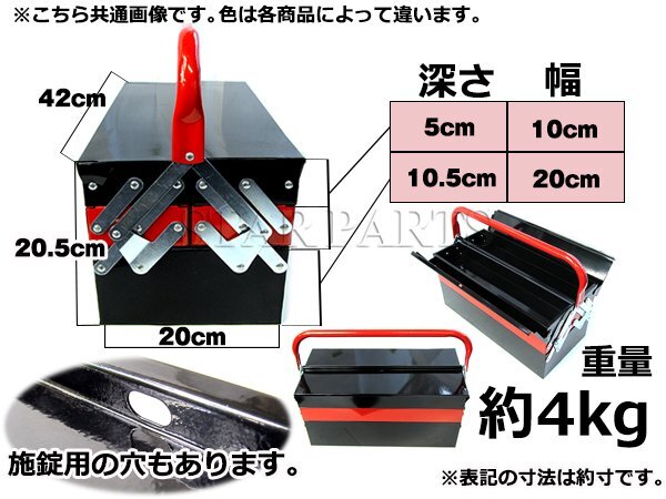 両开き 大型 3段ツールボックス 軽量スチール制4kg 大容量42cm 黒×赤 长さ42cm×幅66.5cm×高さ24cm 道具箱 车载工具 三段