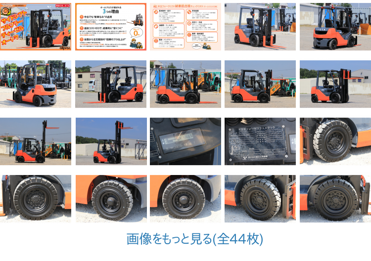 | ▼販売店コメント | ◇トヨタ ◇02-8FD25 ◇年式:2019年9月 ◇ディーゼル ◇オートマ(前後進レバー:左) ◇最大揚高:3000mm ◇稼働時間:4366hrs ◇最大荷重:2500kg ◇アタッチメント:サイドシフト ◇Fタイヤ:ノーパンクタイヤ(新品) ◇Rタイヤ:ノーパンクタイヤ(新品) ◇車体重量:3640kg ◇車高:2120mm ◇車幅:1150mm ◇車長:2600mm(フォーク長含まず) ◇フォーク長: 1060mm