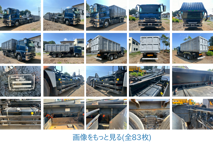 ●今回の車両は、 【三菱ふそうスーパーグレート22tアームロール新明和製ダブルシリンダー・ツインホイスト積載11.4tバッカン付き2デフ7速マニュアル】 の出品になります。