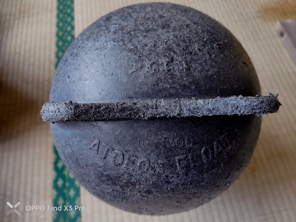 ●簡要説明:この出品は、直径30~30.5cm漁業向きの特大特殊樹脂/プラスチック製ブイです。日本製です。