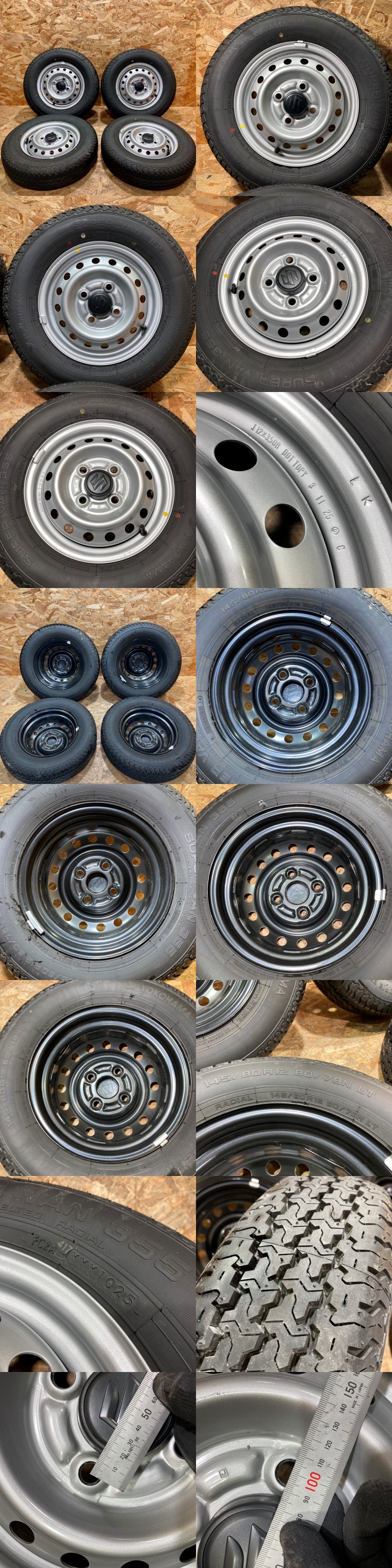 DA16T キャリー リフトダンプ 12×3.50B 145/80R12 80/78N LT PCD100 4本 タイヤ:YOKOHAMA SUPERVAN355 ほぼ新車外し