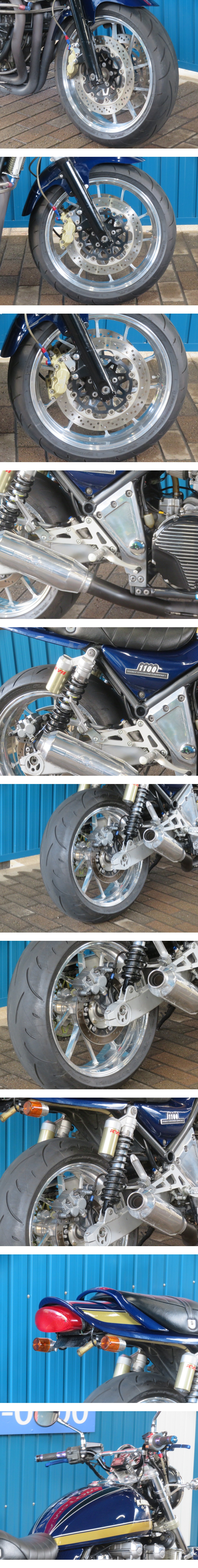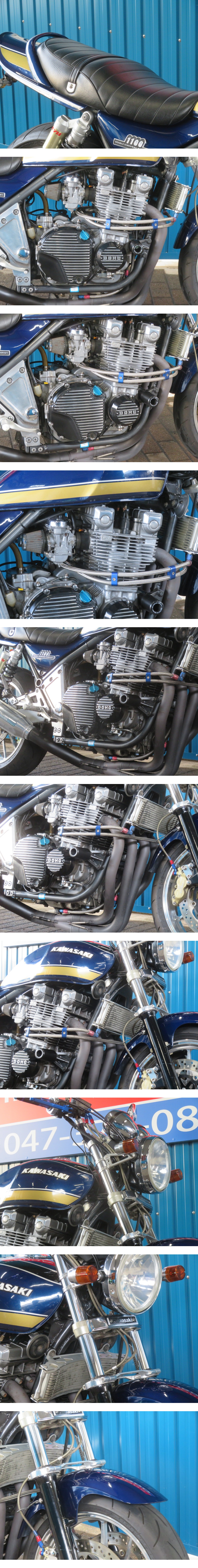 ブルータイガーの鮮烈な外装に、ゲイルスピード/ポリッシュホイール、モリワキモナカ管、そしてサイド回しのアルミオイルクーラー――各パーツが絶妙に調和し、王道でありながらも圧倒的な個性を放つ一台。ストリートでの視線を集めるのはもちろん、ツーリングでも存在感を存分に発揮する、まさに“究極のゼファー1100カスタム”です。