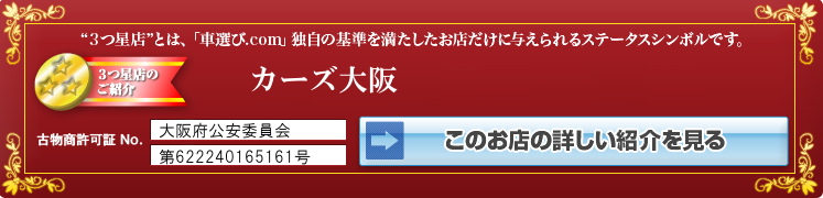 “3つ星店”とは「車選びドットコム」独自の基準を満たした販売店だけに与えられるステータスシンボルです。