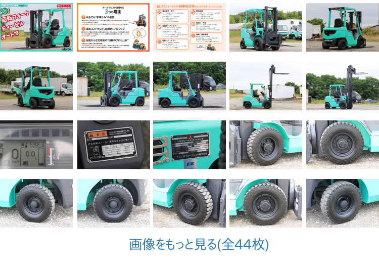 ▼販売店コメント | ◇三菱 ◇FDE25T ◇年式:2016年4月 ◇ディーゼル ◇オートマ(前後進レバー:左) ◇最大揚高:3000mm ◇稼働時間:5395hrs ◇最大荷重:2350kg ◇アタッチメント:回転フォーク ◇Fタイヤ:エアタイヤ ◇Rタイヤ:エアタイヤ ◇車体重量:3910kg ◇車高:2070mm ◇車幅:1150mm ◇車長:2600mm(フォーク長含まず) ◇フォーク長: 1210mm
