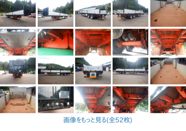 車両情報を説明します。 *平成 19年3月 トレクス *型式 PFG241AFJ *最大積載量 24000kg *車輛総重量 31290kg *寸法:長さ 1330cm 幅 249cm 高さ302cm *車検 一時抹消 内寸1250×240×78