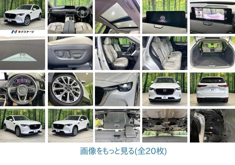 サンルーフ 全周囲カメラ 純正10.25型マツダコネクトナビ 電動リアゲート シートヒーター ホワイトレザーシート BOSEサウンドシステム レーダークルーズコントロール 禁煙車 電動リヤゲート