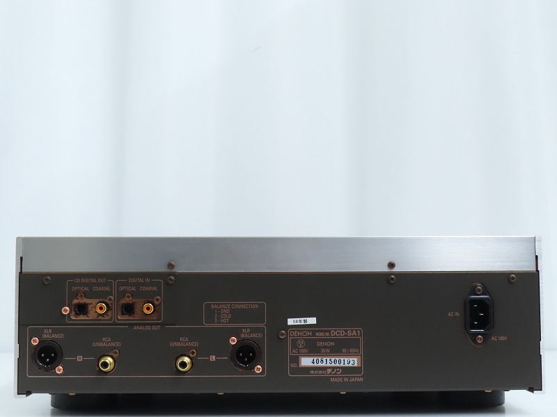 ■メーカー : DENON ■型番 : DCD-SA1 ■外径寸法 : W434×H150×D410mm ■重量 : 21.8kg 【商品の状態 当店での確認内容】 CDの音声出力は確認出来ておりますが、トレイ開閉不良のためCDが中に入ったままとなります。また、SACDは未確認となります。 リモコン/電源ケーブルは付属しておりません。 ※上記により【難あり商品】としての出品となります。 「商品の状態」に関しましては当方主観の目安となります。外観などは中古品で個人差もありますので詳細は画像にてご判断ください。 画像にて不明な点はご質問下さい。 出品商品は画像のものですべてになります。画像に写っているもの以外は付属いたしません。 ※注意※ ヤフオクのシステム上、送料表記が送料未定となっておりますが、送料に関しては全て有償となりますので下記を参照下さい。 【送料 全国一律 2,980 円 沖縄、離島は別途お見積り】 ※送料がお得になるサービスです(下取りシステムのご案内です) 当ストアでは商品を安全にお届け出来るよう提携運送会社と協議の上、発泡緩衝材や強度段ボールの使用等 運送会社が指定する梱包方法や資材を採用しております。 より安全にお届け出来るよう商品仕様により梱包サイズが大きくなる場合や個口数が増える事がございます。 【当ストアオークションルールを入札前に必ずご確認ください。】 【落札後の取引手順】 ・落札後は取引ナビにて、必要事項をご入力後、送信ください。 取引終了後48時間(土、日は除く)以内に入力をお願い致します。 ※ご連絡が頂けない場合は落札者様都合でのキャンセルとさせていただきます。 ・落札代金(商品代金+消費税+送料)の入金をお願い致します。 ※大型商品の場合は送料確定後の決済となる為取引ナビを入力頂き、当ストアより送料のご案内が来るまでお待ちください。(土曜、日曜、祝日の場合は翌営業日より順次ご案内いたします) ・お支払い方法は※クレジットカード/※PayPay残高/※PayPayクレジット/PayPay銀行/ゆうちょ銀行のみです。 ※商品代金引換(代引き)のお取り扱いはしておりません。 ※領収証の発行が必要な方はご連絡ください。 ※銀行振込の際の振込手数料はご負担願います。 ・入金確認後に出荷手配を致します。 (原則入金確認後3営業日以内に発送いたしますが、大型や重量のある製品はお時間をいただく場合もございます。) ・発送は当店指定の運送会社の元払いのみでの発送となります。 ※他の運送会社、送料代引き等は致しかねます。 ※落札者様ご自身での運送会社の手配いただく事も可能ですが荷物事故の責任の所在の問題上、梱包は致しかねます。 ※店頭にお越し頂き手渡しも可能(福岡市早良区)です。ご希望の方はご落札後にご連絡下さい。 ・大型/重量物商品の送料につきましては商品の特性上、荷降ろし状況等により送料が大きく前後し運送業者に別途見積りが必要な為、早めのお問い合わせにてお見積り上、入札をお願い致します。 【初期不良の保証について】 ・商品到着後の初期動作不良、また配送中の事故による破損、不具合が有る場合は、商品発送後10日以内に当ストアまでご連絡ください。当ストアでは修理での対応を優先させて頂きますが、修理不可の場合は全額返金させて頂きます。 (商品代金+消費税+送料のお支払い頂いた金額となります) 【初期不良の保証の対象外について】 次の場合は保証の対象外となりますのご留意ください ・ジャンク商品、現状商品、難あり商品での出品商品。 ※難あり商品に関しましては動作確認時に一部動作不良が確認された商品になり、記載している動作確認以外にも、動作不良がある可能性もございます。こちらに関しましても保証対象外となりますことをご理解ください。 ・年代物のオーディオなどで、当店にてわからない範囲で部品が交換されている場合 ・楽器類の特殊機材(マイクロスコープ等)での確認までは行っておりません。気になる方は事前にご質問いただくか、入札をお控えください。 ※初期不良に関しましては【商品の状態】に記載のもの、またそれによって起因する動作不良は対象外です。 ※商品発送後10日を過ぎてのご連絡は対応が出来ませんので、商品が到着しましたらお早めに確認をお願い致します。 【メーカー保証の加入・継承】 ・未使用品、展示品やメーカー保証期間が残っている商品に関しまして、メーカー保証の加入、継承が必要な方は、落札後取引ナビ内にて当ストアにお知らせください。商品発送までにご連絡いただけない場合、メーカー保証の手続きを承れない場合があります。 【評価について】 ・評価不要の場合、必ず取引ナビの「要望欄」にてお知らせください。それ以外でご連絡をいただいた場合、対応できない可能性がございます。一度行った評価はシステム上取り消しが行えませんのでご了承ください。 【入札削除・キャンセルについて】 ・入札後はトラブル防止の為いかなる事情がおきましても入札を削除等は致しておりません。 ご検討