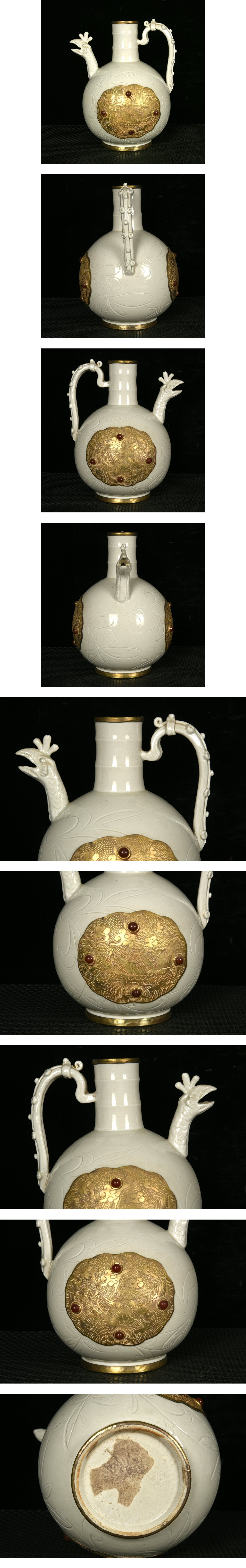 NA100■宋時代 定窯 包金嵌寶石鳳頭壺尚薬局款 収蔵品 古玩 唐物 古陶磁器■高さ20cm直径17cm■