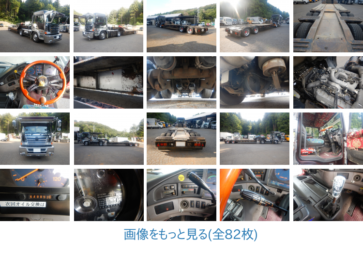 車両情報を説明します。 *平成15年3月 日野 *型式 KL-SH1FDGG *エンジン型式:F17D *排気量:16740cc *寸法:長さ 593cm 幅 247cm 高さ311cm *乗車定員 2人 *シフト MT7速 走行距離 550000km台 *最大積載量 32530【9800】kg *車検切れ 450馬力 トレーラー *平成7年1月 ユソーキ *型式 YLF200J *寸法:長さ 1020cm 幅 249cm 高さ154cm *最大積載量 18500kg *車検切れ