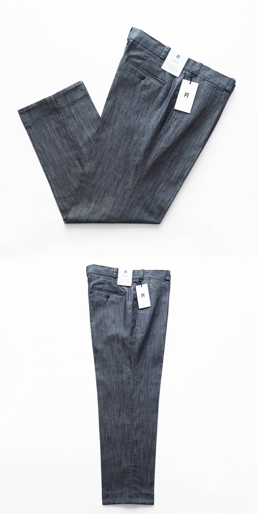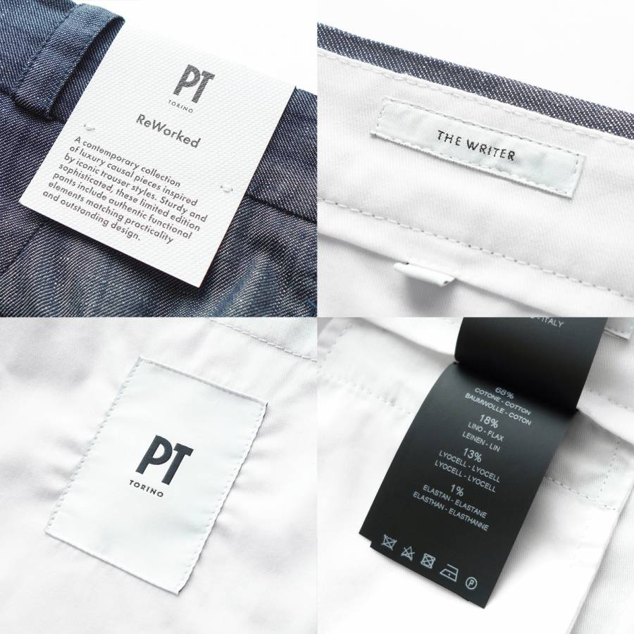 イタリアきってのパンツ専業ブランド、PT TORINO(ピーティートリノ)。以前はPT01(ピーティーゼロウーノ)というブランド名でしたが、創業地であるトリノへのトリビュートとともに“究極のパンツを創る”という強い意志を込めてこの名に変更されました。50年以上にわたって培ってきた生地への深い造詣を活かしつつ、メンズクロージングにおいてもっとも重要なアイテムはパンツというコンセプトのもと専業ブランドとしての技術とノウハウを注ぎ込んでいます。PTのパンツにはそれぞれのモデルごとにテーマが設けられており、独自のデザインでその世界観を表現するというパンツの可能性を広げる多様性に加え、そこには美しいヒップラインとともに美脚効果を備えた完璧なシルエットが貫かれています。