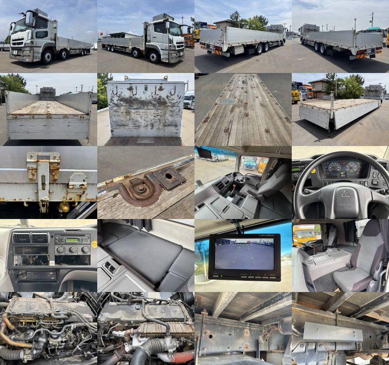 アルミブロック平ボディ 4軸低床 荷台寸法:962×240×69 荷台床:板張り 積載13.7t 後輪エアサス 内フック スタンションホール バックモニター メッキパーツ 7速ミッション 走行83.1万㎞ 排ガス適合(各都市登録&乗り入れ可) 大型免許対応車 |