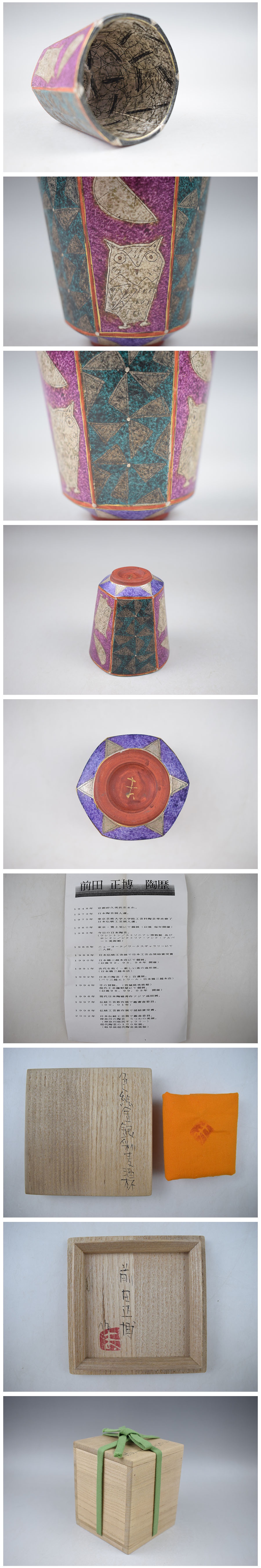 【前田正博 色絵金銀彩麦酒杯 共箱 真作保証】
