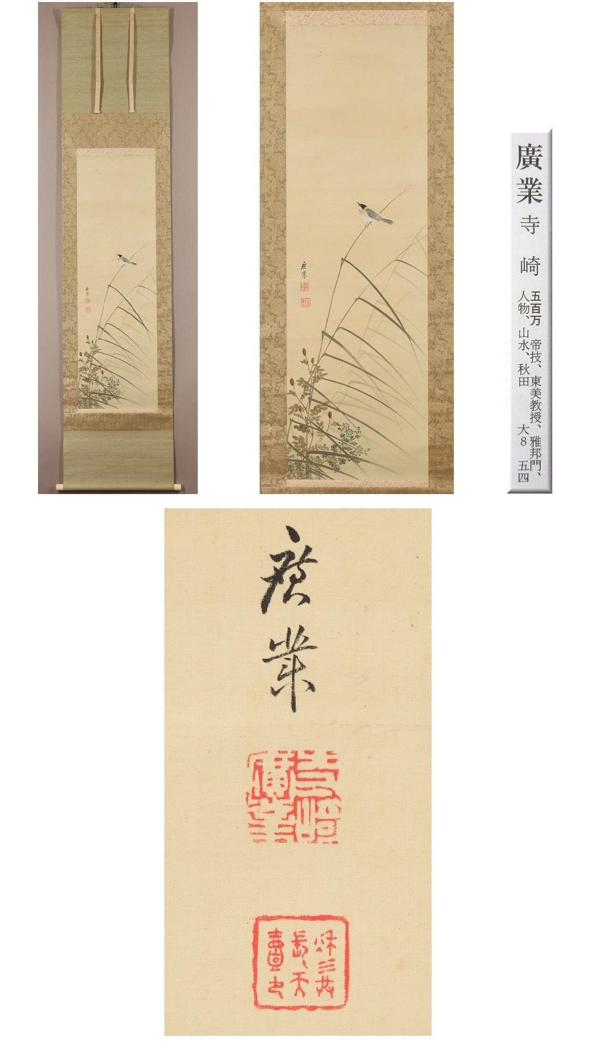【真作】寺崎広業(寺崎廣業)◆野之秋◆共箱◆日本画◆肉筆◆絹本◆掛軸◆w849