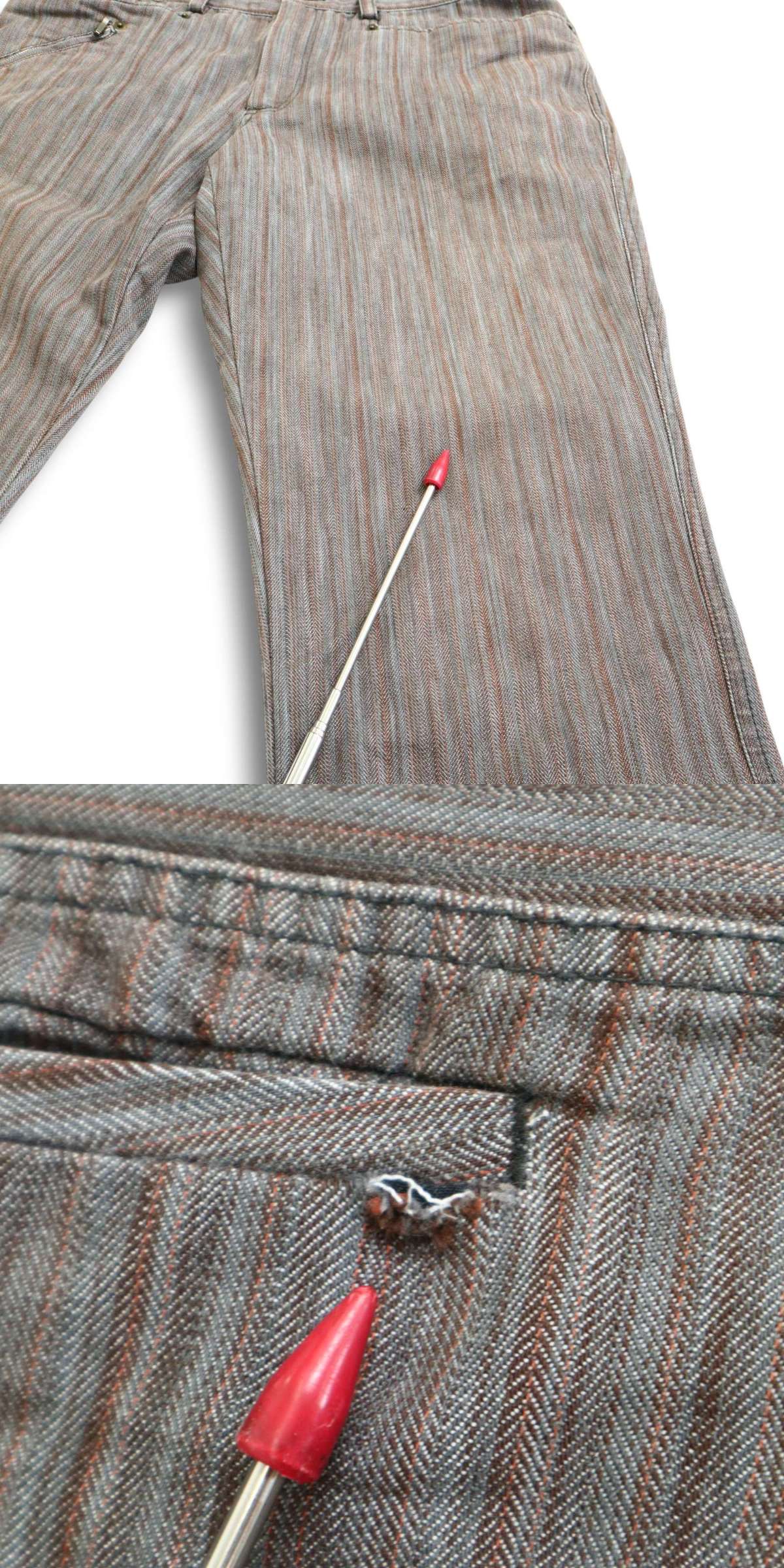 フロントに僅かな色褪せがございます。バックポケットに小さな破れがございます。着用に問題はございません。