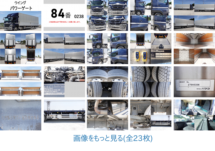 販売店による評価外装の状態 | 部分的に目に見えるキズやヘコミがあるものの、比較的きれいな車 | 内装の状態 | 部分的に目に見えるキズや汚れ、穴があるものの、比較的きれいな車 | 車両状態コメント | スーパーグレート 84番 跳上パワーゲート1t 大型 アルミウイングアルミウィング 積載12.8t 後輪エアサス ベット キーレス 左電動格納ミラー バックカメラ 車検証サイズ1198×249高379 荷台内寸944×238高262 |
