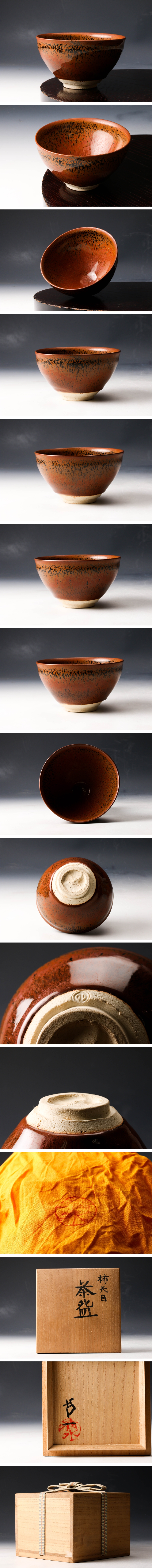 【佳香】人間国宝 清水卯一 柿天目茶碗 共箱 共布 茶道具 本物保証