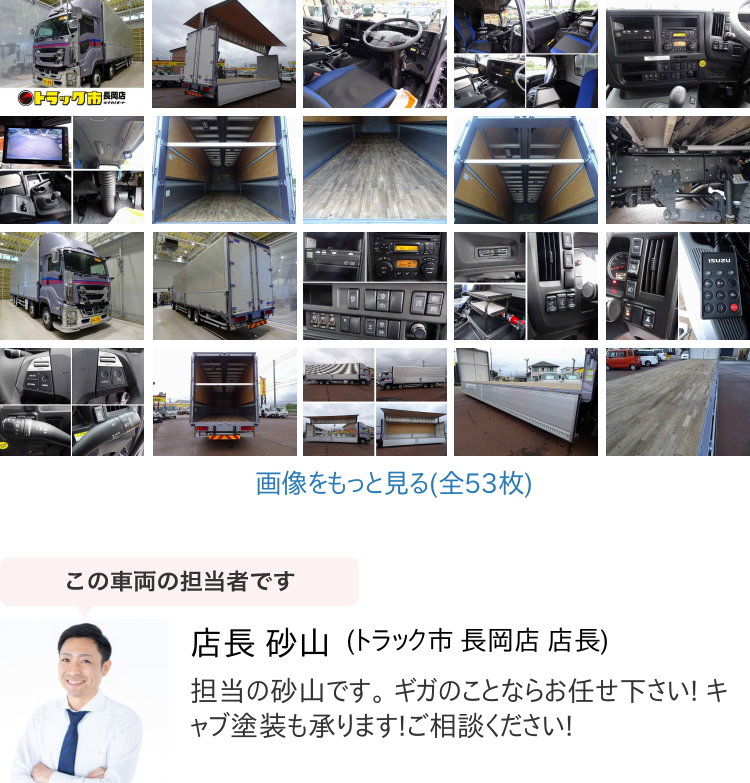 【装備】 オートAC PS PW SRS ABS キーレス 左電格ミラー/ヒーター/ワイパー エアサスシート/肘掛け CD/AM/FM ETC バックモニター ターボ 排気ブレーキ T/Mリターダー デフロック クルーズコントロール 坂道発進補助装置 車線逸脱警報装置 衝突被害軽減ブレーキ アイドリングストップ フォグランプ トラクションコントロール 室内蛍光灯/カーテン