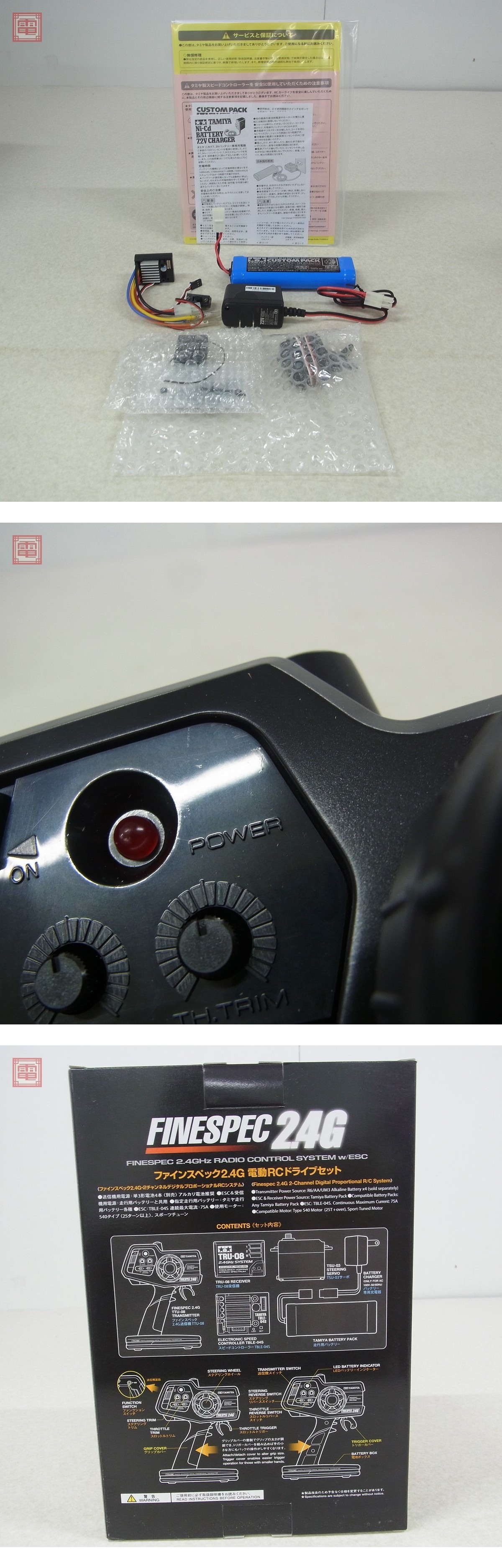 タミヤ ファインスペック 2.4G 電動RC ドライブセット タミヤRCシステム ITEM 45053 通電確認済 ■こちらの商品は【通電以外は未チェック】のため、どの様な不具合が生じましても当店では交換・返金・返品等の対応はできません。 ■ご理解ご納得いただける方のみご入札をお願いいたします。 ■本商品はメンテナンスが必要な商品となります。 ■メンテナンスができる方のみのご入札をお願いいたします。 ■通電のみ確認しました。 ■外箱にスレがあります。 ■本体にスレがあります。 ■前所有者様の使用履歴等は不明です。屋内/屋外等使用されていた環境等も一切不明です。 ■上記以外は未チェックです。 ■チェックに使用した電池は付属しません。 ■写真のものが全てです。付属物の有無や状態については写真からご判断ください。 ■付属物については細かいチェックはしておりませんので、万が一、欠品があったり余計な物が入っていたとしてもご了承ください。 ■商品到着後、当店の保証期間中は、商品及び箱や取説、付属品などを1つでも廃棄や破損をしないようにお願い致します。廃棄や破損をした場合、商品に問題があった場合でも対応や返金などの対処ができなくなります。 ■商品によりますが、発売されてから10年以上経過している中古品である事をご理解頂いた上でご入札をお願い致します。なお、新品や美品、また特記事項がある場合は別途明記します。 | |||