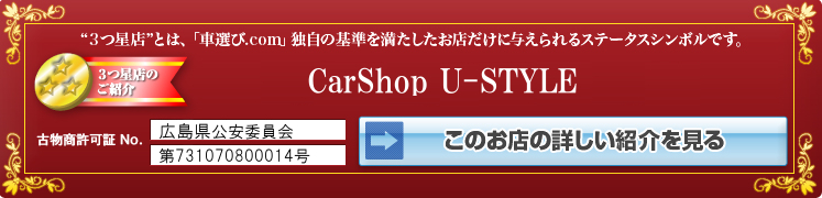 仕入れた車両は、オークション会場より自走にて店舗まで持ち帰りますので走行チェックは必ずしております。 Yahooオークションに多数車両出品中。 【広島 U-STYLE】で検索して頂きますと、当社が出品している車両一覧がご覧頂けます。