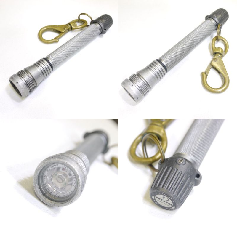 連続点灯時間:約195分 [アルカリ乾電池使用時] 耐圧水深 :120m 大きさ :最大径Ф33.7mm × 195.5mm 重量 :208.5g(陸上) / 約120g(水中)