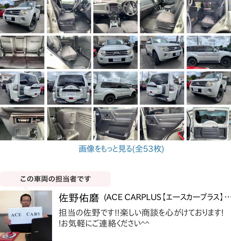 ▼販売店コメント | ご覧頂きありがとうございます。 ■この車への「お問合せ」・「無料見積り依頼」、「在庫確認」は、お気軽にどうぞ! ■この車両以外にも「車選びドットコム」におすすめの中古車を掲載しております。 他の在庫車種、お店へのアクセスは【販売店情報ページ】をご覧ください。 問合わせ・来店の際には「中古車情報サイト(車選びドットコム)を見た」とお伝えください。 店頭商談中・売約済の場合もありますので、ご来店の際は事前にお問合せ頂き、該当車両の有無をご確認ください。