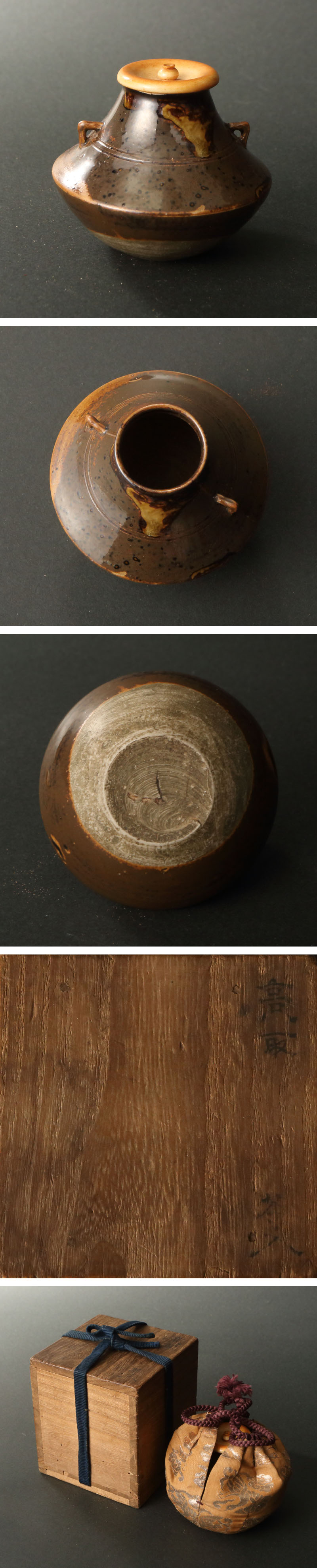 時代 高取茶入 ※銀欄仕覆添え