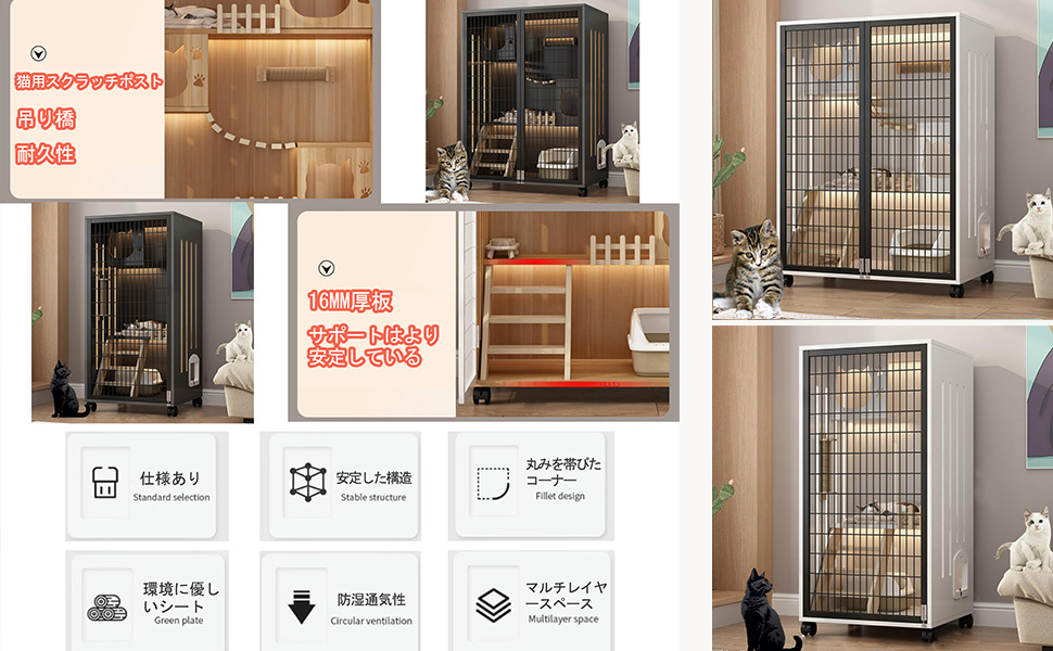 ??【猫 ケージ 多頭飼い広々とした猫ハウス】当社の木製猫用ケージ猫用トイレ、給水器、フードボウル、おもちゃなど、複数のアイテムを収納できます。1~3匹の猫に適しており、リビングルーム、寝室など、部屋のどこにでも置くことができます。多層の合理的なデザイン、猫のために特別に設計された統合された生活空間.