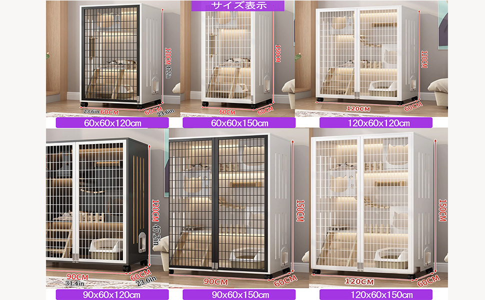 ??【換気と放熱猫のゲージ 室内用】ねこゲージ猫の囲いの側には換気フェンスが装備されており、猫は新鮮な空気を吸い、効果的に熱を放散できます。底部には4つのユニバーサルホイールが装備されており、いつでも移動するのに便利です。ホイールにはブレーキが付いているため、ケージを固定して移動を心配する必要はありません.