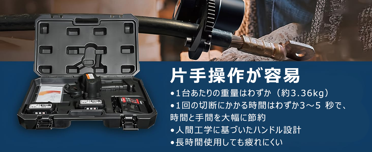 充電式ケーブルカッタ ラチェット式 充電ケーブルカッター 18V対応 最大Φ50mm切断 シザース 小型 軽量 電気作業 電動工具 銅/アルミなどのに対応 簡単操作 バッテリー2個と器1個付き