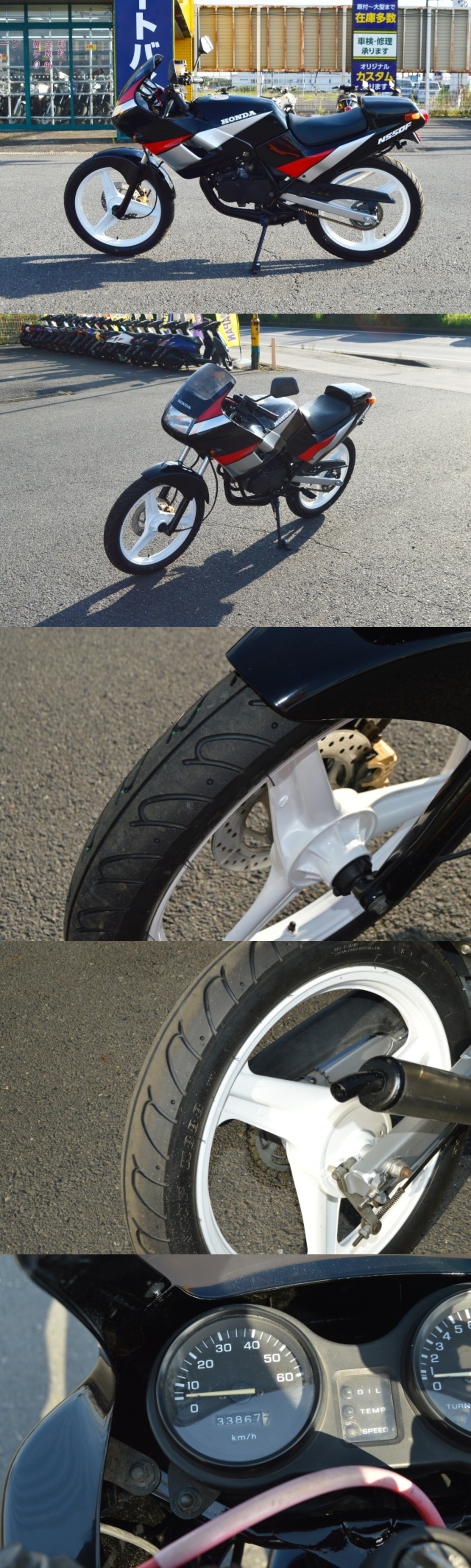 | ご覧頂き誠にありがとうございます。 展示されてる車両は中古車両になりますので傷や錆等はございます。 店内は作業場兼用となっておりますので、安全確保のため店内への入室はご遠慮下さい。 ご理解頂きますよう、よろしくお願いします。 超美車なNS50F入庫しました! 前後タイヤ,プラグ等交換! 店頭でも販売しておりますので、売り切れの場合は御容赦下さい。 整備点検と試乗してからのお渡しになりますので、納車まで2週間~1か月ほどお時間がかかります。 こちらの車両は引き渡し後の保証等は一切ありませんので、ご理解いただきますようよろしくお願いします。 ミスの無いように努めておりますが見落としや記載ミス、個人差や個体差等あるかもしれません。 ご購入は全てを納得しノークレーム、ノーリターンをお約束頂いた物とします。 登録は御客様にお願いしております。 当店から「販売証明書」を発行いたしますので、所轄の市町村役場の税務課にて手続きして頂ければナンバーと登録書が無料で発行されます。 印鑑が必要になる場合もありますので、ナンバー登録の際には印鑑をご持参頂きますようお願いします。 詳しくは所轄の市町村役場の「税務課」にてお問合せください。 車両代金のほかに、下記別途料金がかかります。 ご了承下さい。 自賠責保険料(12ヵ月) ¥ 6,910 自賠責のみ現金でのお支払いになりますので、。ご理解いただきますようよろしくお願いします。 詳しくはお問合せ下さい。 ファーシャジャパン水戸店 茨城県水戸市吉沢町354-47 029-353-7527 営業時間AM11:00~PM7:00 定休日 金曜日 |
