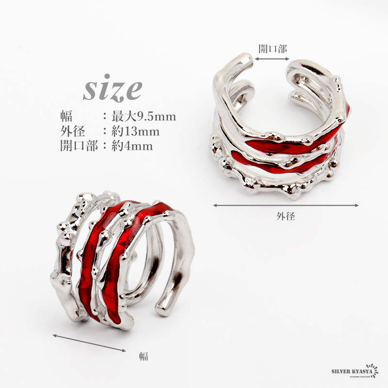 イヤーカフ レッド 赤 イヤーカフス レディース 3连 シルバー925 エナメル 片耳用 金属アレルギー