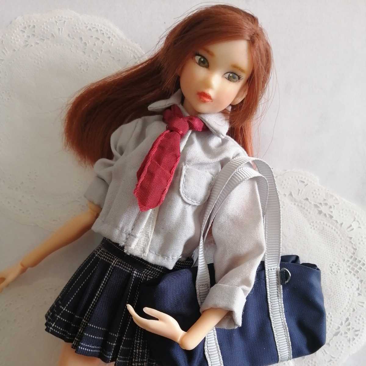 tia*゜☆:ドール用 ネイビー 绀色 スクール バッグ バービー momoko ピュアニーモ リカちゃん TBleague 1/6ドール 学校 学生鞄 指定バッグ