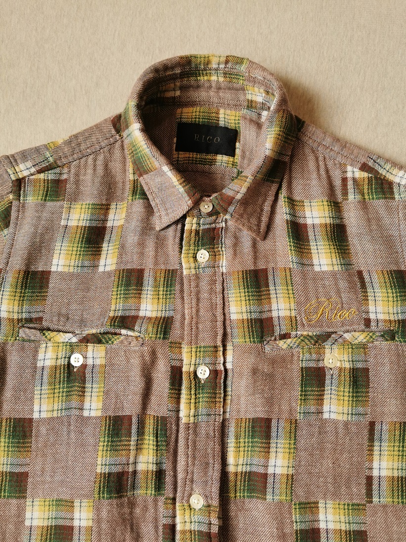 Rico 正规品 ボーリングシャツ Msize フラッグショップで购入 ホワイト ブラウン チェック リコ