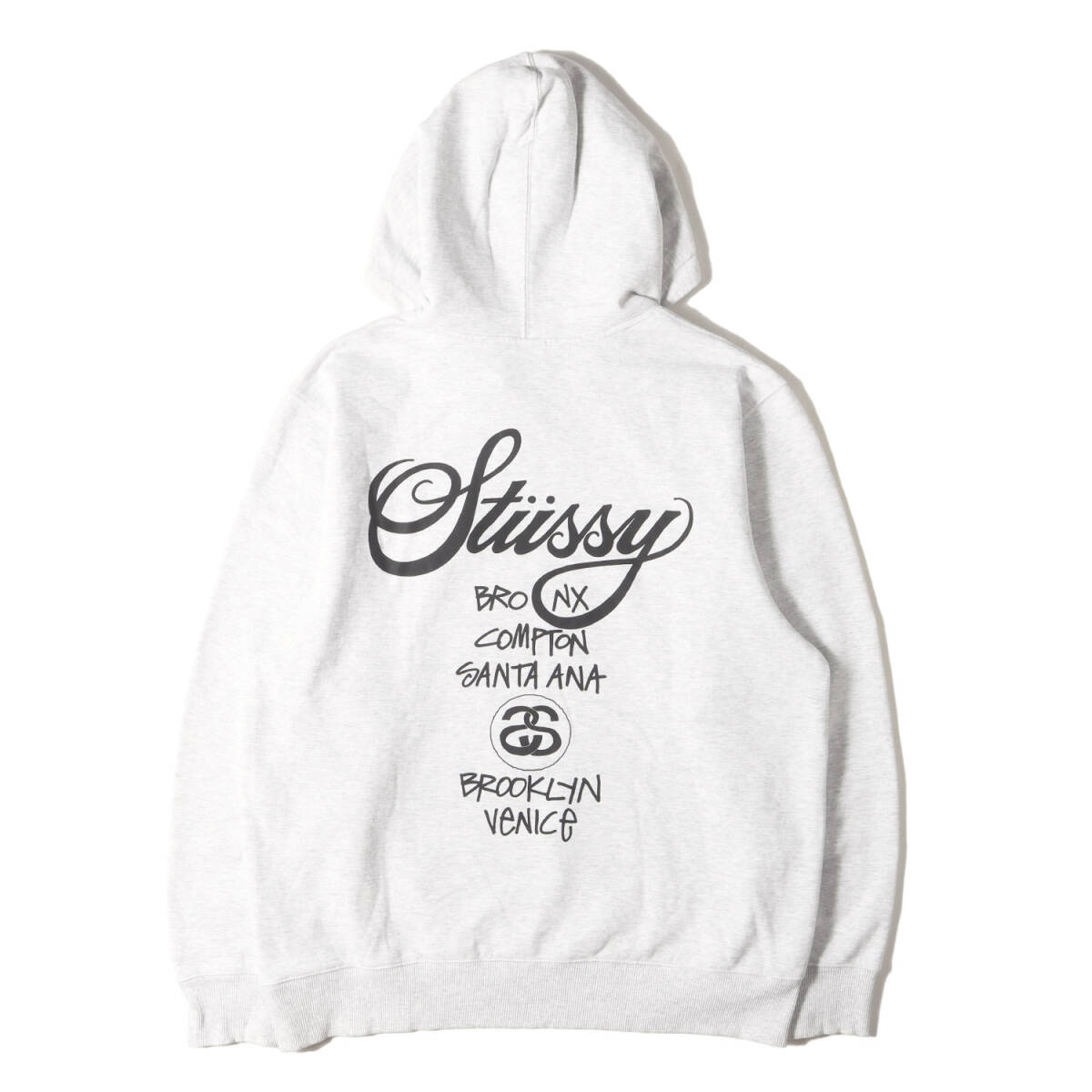 STUSSY ステューシー パーカー アッシュグレー サイズ:L | 21AW ワールドツアーロゴ スウェットパーカー | トップス フーディー