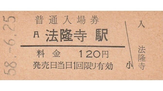 G227.関西本线 法隆寺駅 120円 58.6.25【1384】